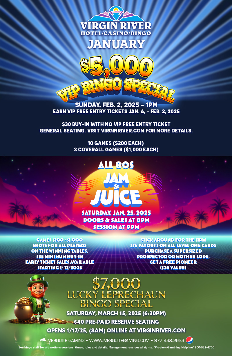 Live DJ playing your favorite “JAMS”, and all players on the winning Bingo table get “JUICED”.