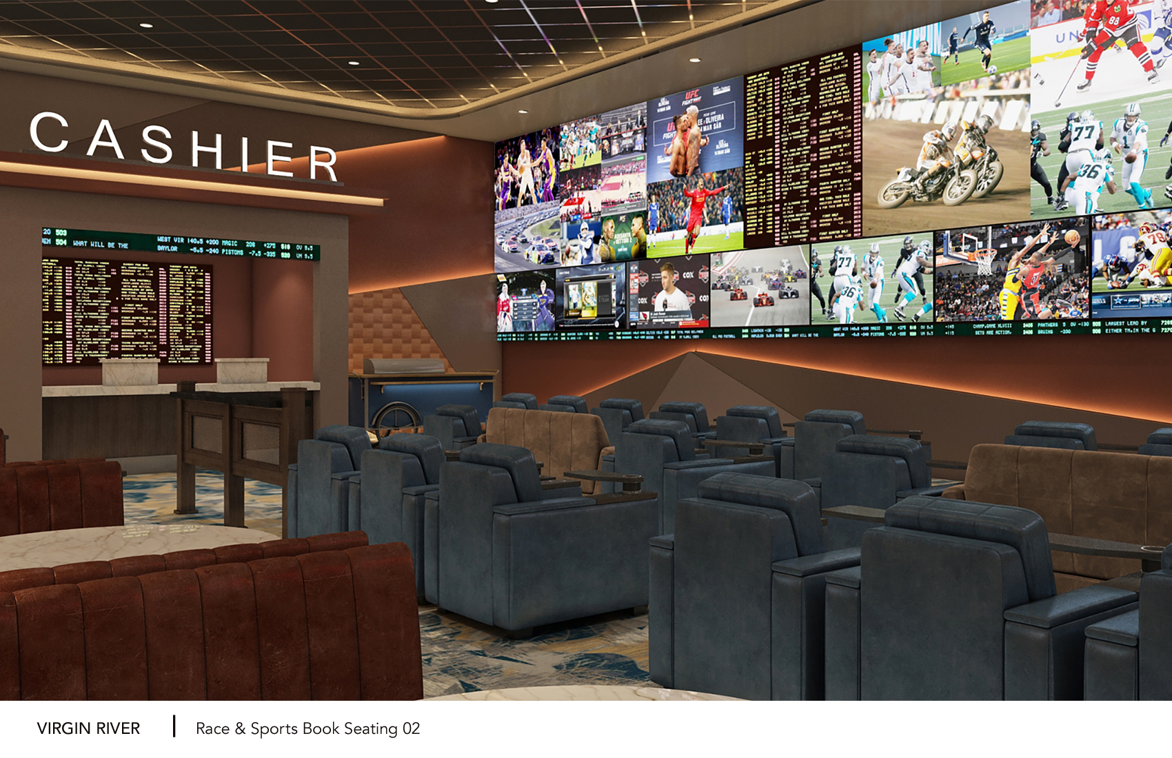 The new Race & Sports Book at the Virgin River Hotel & Casino will feature a state-of-the-art gathering place for enjoying and wagering on horse racing & sporting events in Mesquite. The expansion will include several new 85” sized monitors along with a huge 53’ wide x 10’ high video wall. It will also include 90 additional slot machines for the gaming floor. “Guests will be amazed when they see it completed,” said Moore.
